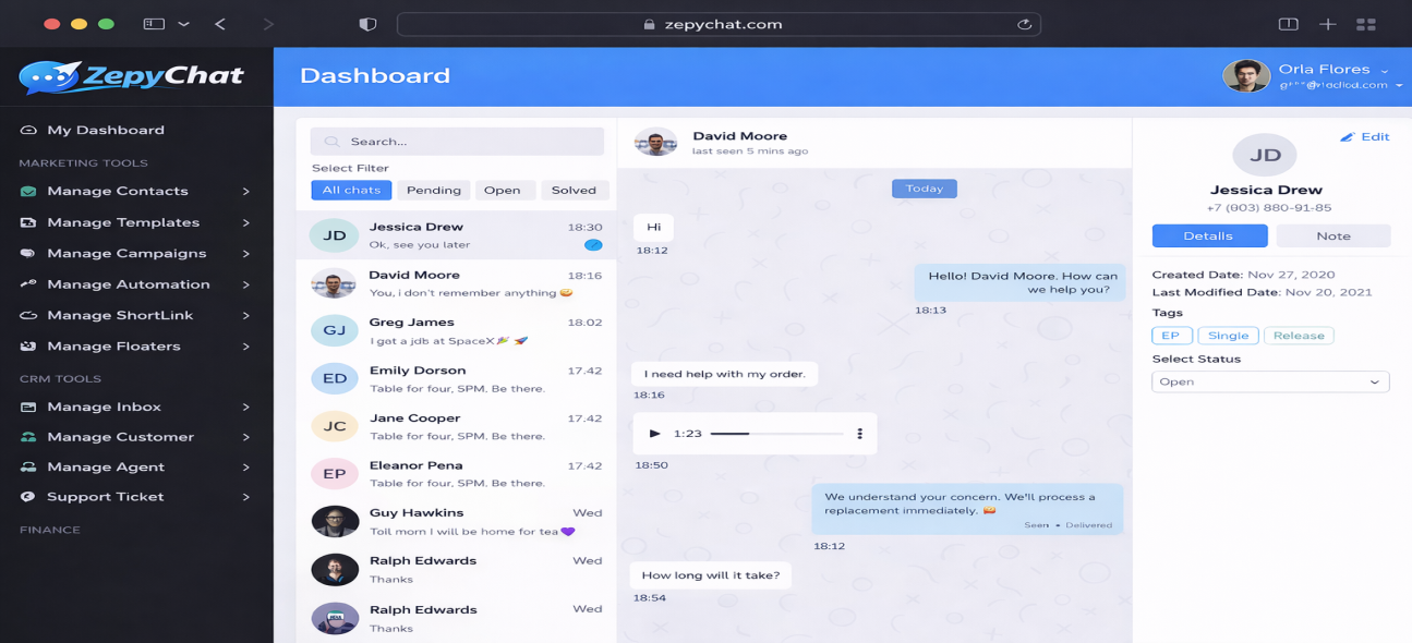 ZepyChat is a complete cross-platform WhatsApp CRM and marketing tool that helps businesses manage conversations, automate customer engagement, and run marketing campaigns through WhatsApp.